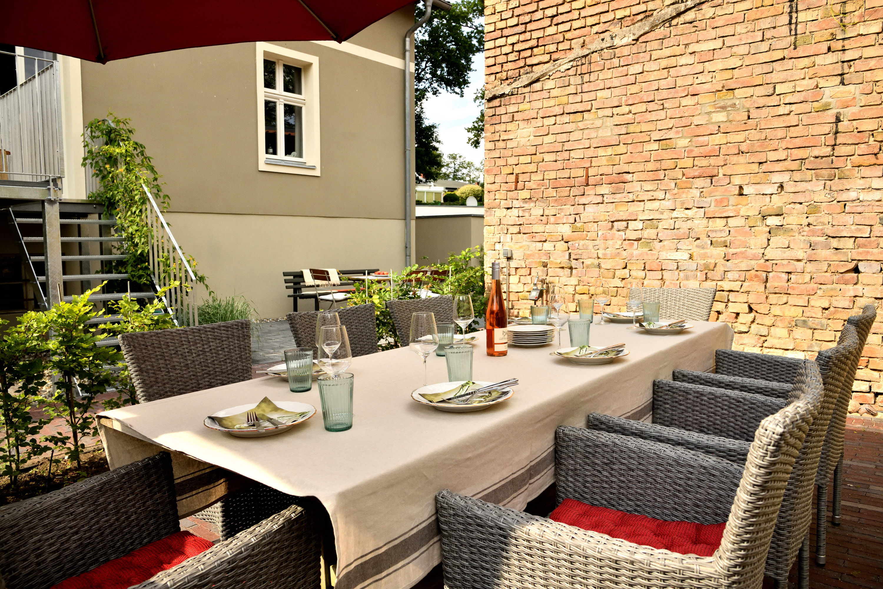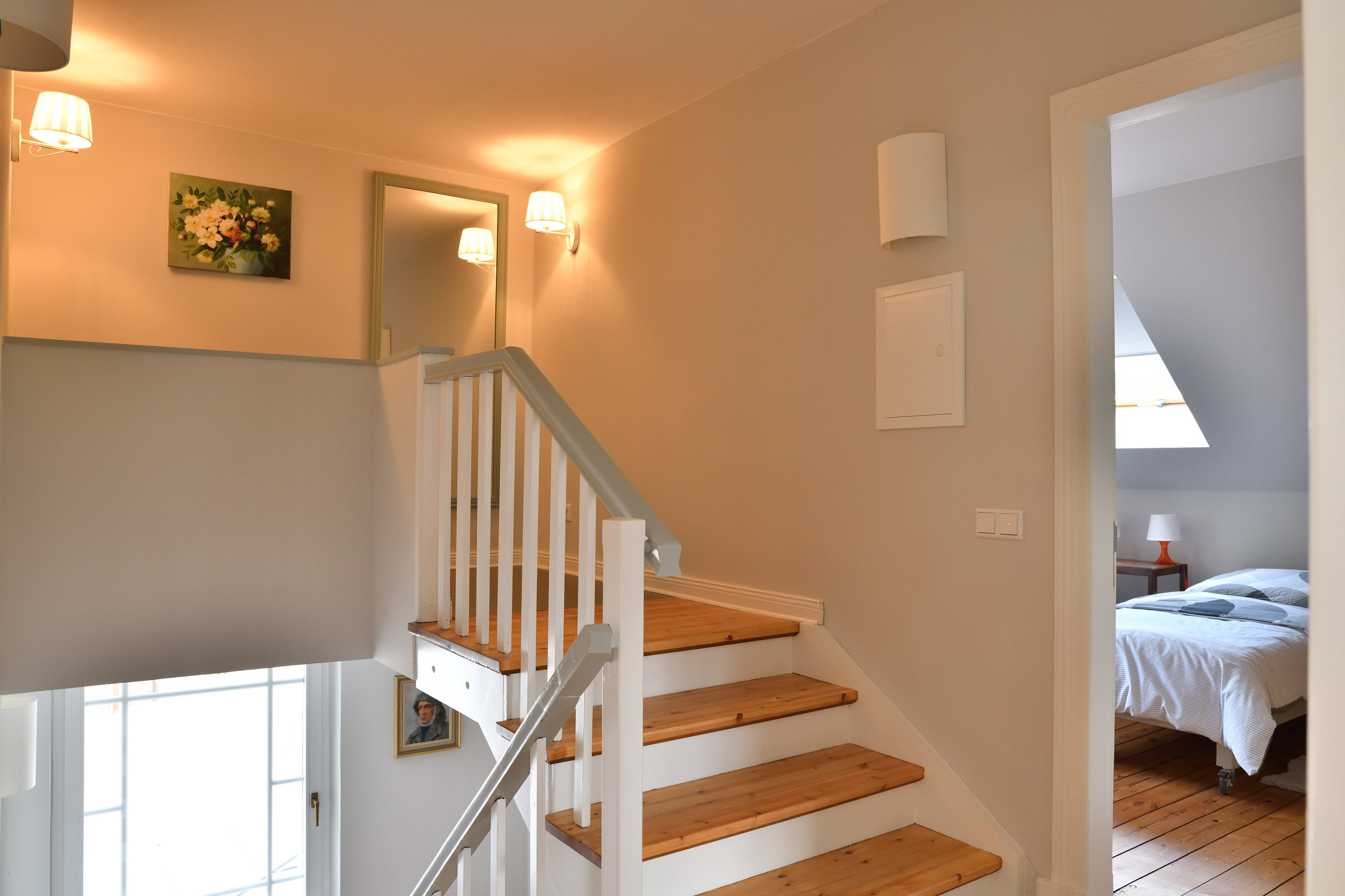 Eine Gruppe von 8 Gästen kann an diesem Ort im beschaulichen Ferch vergnügliche Urlaubstage verbringen. Im Haus bieten die 4 Doppelzimmer Rückzugsmöglichkeit und schöne Ausblicke. Der großzügige Wohn- und Essbereich verfügt über ausreichend Platz und Möglichkeiten, um zusammenzukommen. Der neu gestaltete Hof ist begrünt und bietet verschiedene Plätze, um Sonne oder Schatten zu genießen.